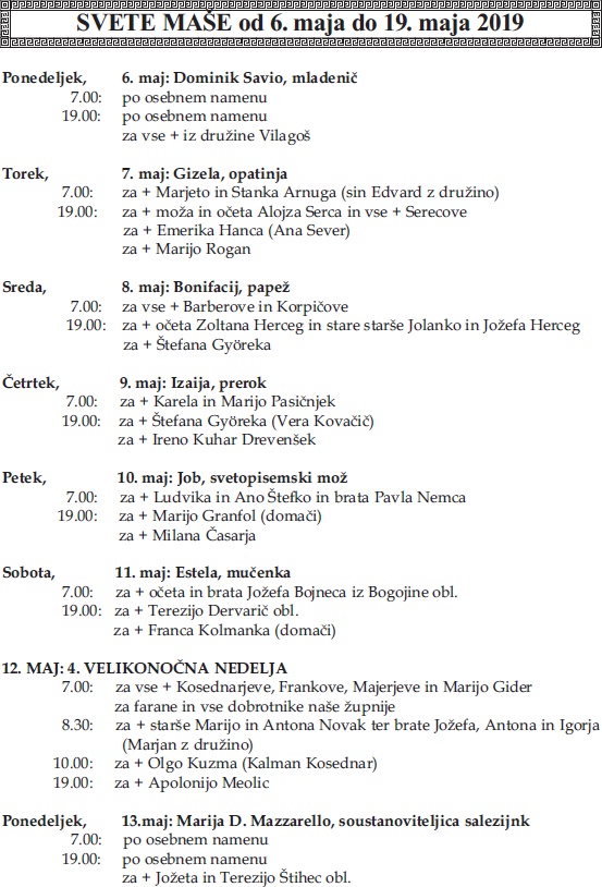 Leto XXIII — Številka 10 — 5. maj 2019 Šmarnice 2019: Panonski cvetovi za Marijo V pripravi na obhajanje 100-letnice združitve prekmurskih Slovencev z matičnim…