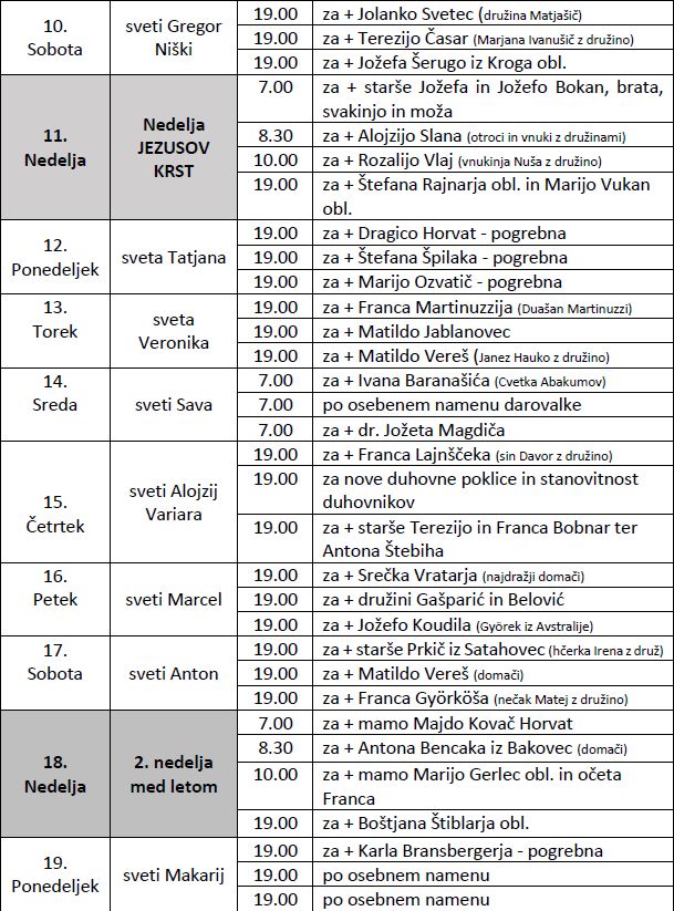 Murski Črnci: 15. avgust, sv. maša ob 10.00 uri;