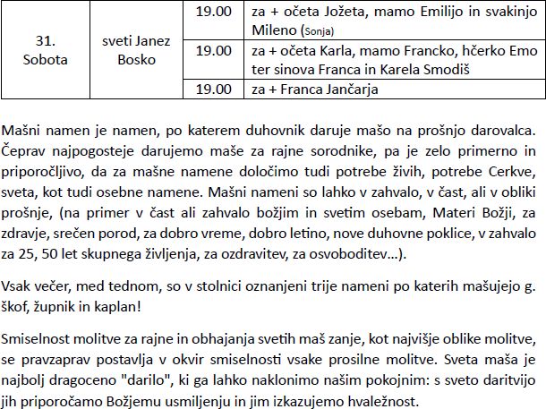 V soboto, 24. januarja, bo eno uro pred večerno sveto mašo, češčenje Najsvetejšega. Vabljeni člani Združenja Marije Pomočnice.