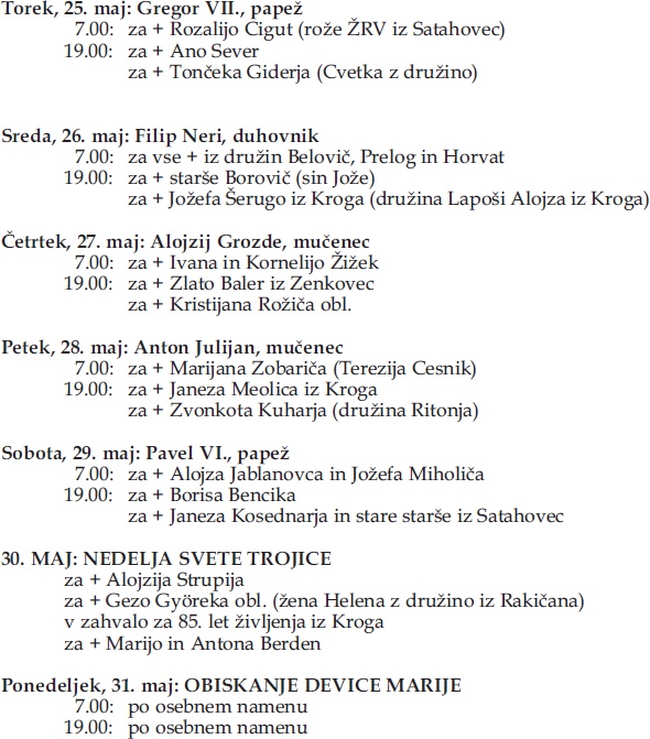 V nedeljo, 23. maja, ob 10.30 uri – Binkošti, k maši vabljeni vaščani Satahovec.